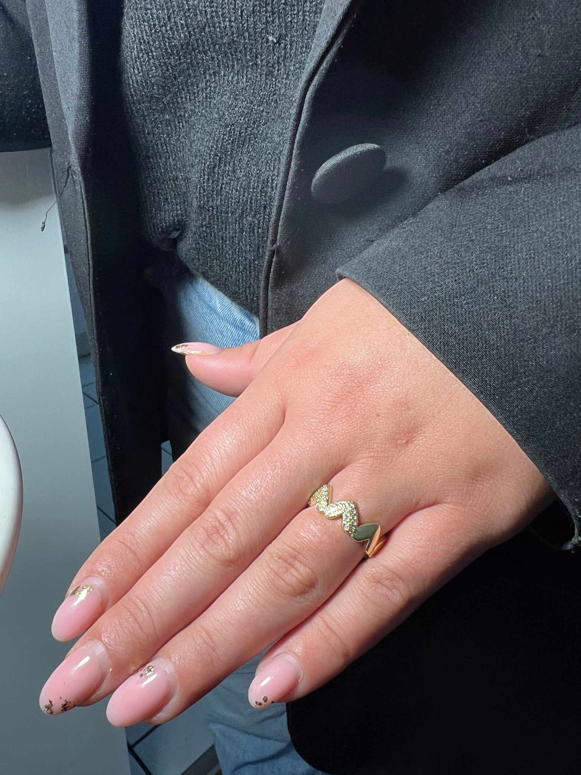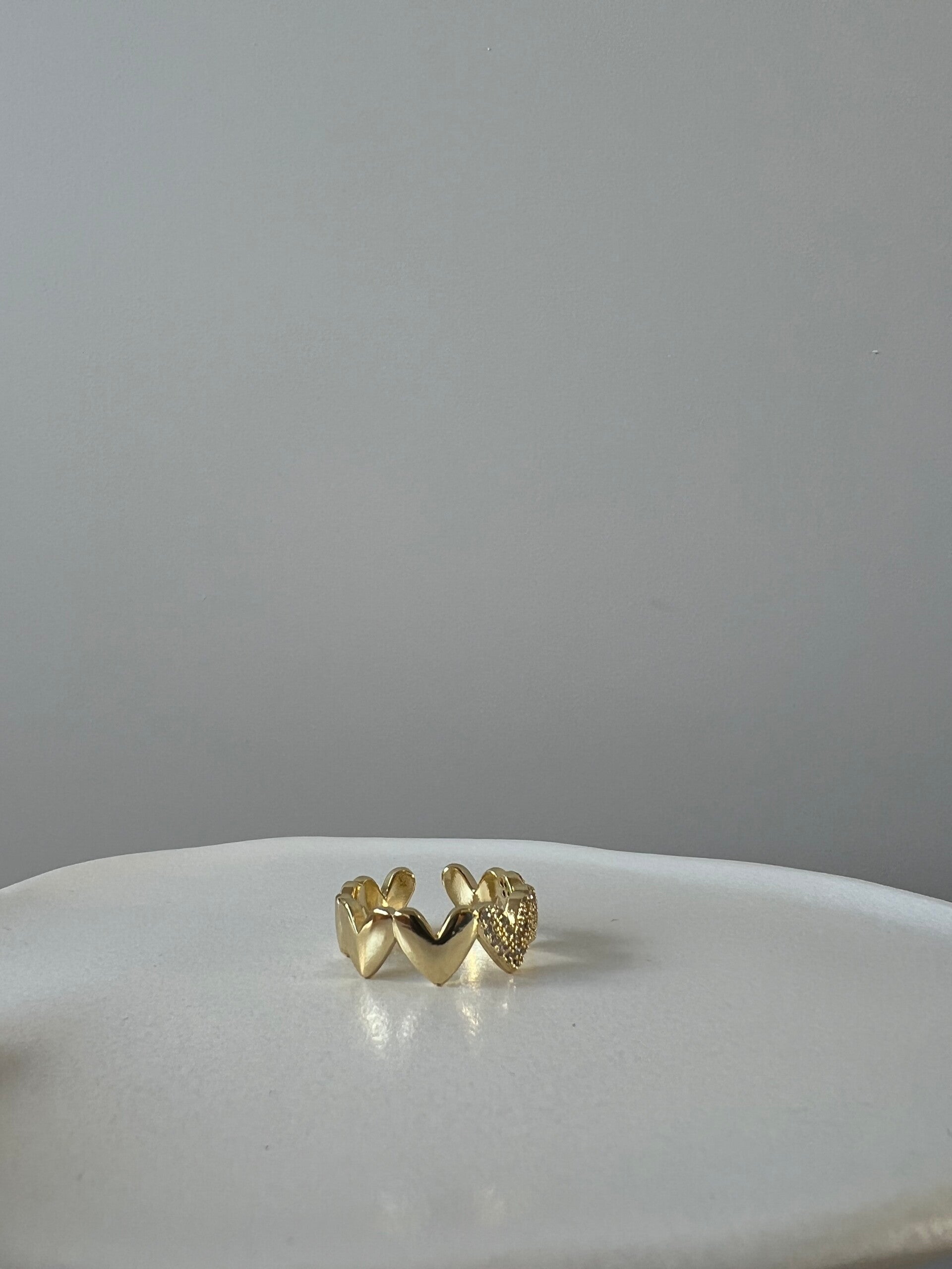 Gouden ring met hartjes, afwisselend met 2 witte zirconia's hartjes.